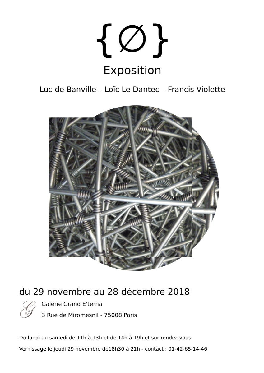 Francis Violette, Luc de Banville et Loïc Le Dantec tentent de sonder ce que l’on nomme difficilement : l’espace, la forme et le vide. Leurs vocabulaires formels empruntent autant d’éléments aux systèmes mathématiques, qu’aux stratégies visuelles de l’architecte ou de l’astronome. Ils puisent dans le plan, l’axiome et l’échelle des outils qui se posent comme des tentatives de magnifier, de délimiter voire de dominer ces interstices. Ces constructions occupent l’espace comme des anomalies, des excroissances matérielles subvertissant les repères schématiques du quadrillage de dessin ou de l’équilibre sculptural.